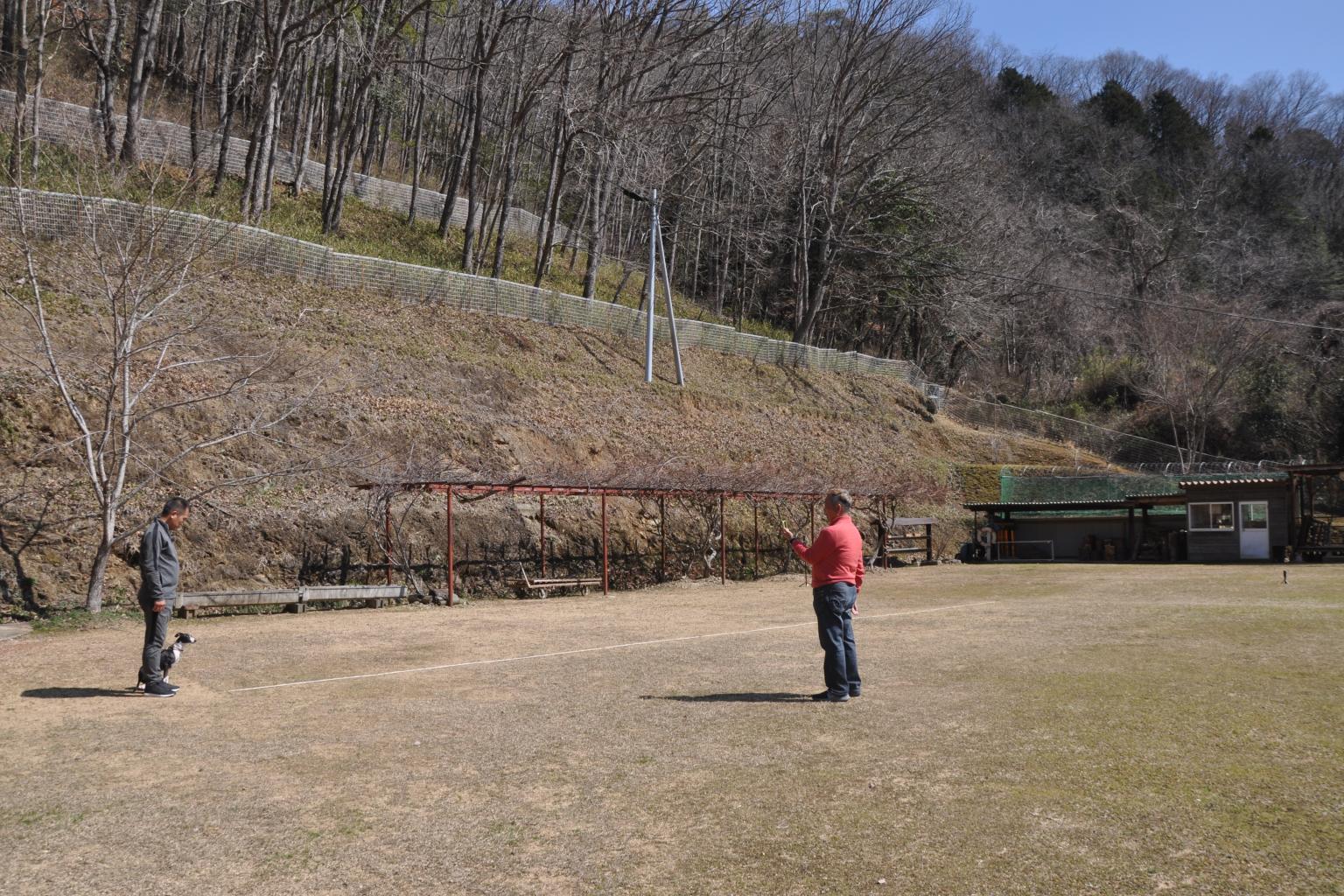 キンデル・パークは静的な公園の機能を併せ持つ自然豊かな季節を感じる、既存樹木の恵みをそのままに人と犬が楽しめる施設です。公認の訓練士が飼い主さんと共に初歩的な躾・訓練を行う日本警察犬協会公認の訓練所、自然の中で私たちの先人が残した棚田(野づら積み)の起伏を利用したドッグランも有ります。 愛犬と共にのんびり散策・とんだりはねたり。 対岸には岡山東部を流れる吉井川水系本流の一級河川が見渡せます。